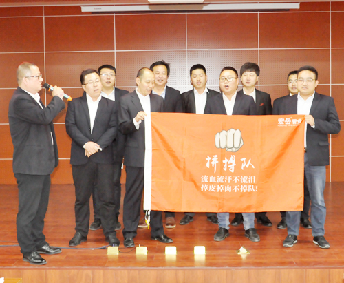 4月3日,www.huatihui.com集团营销誓师大会在营销中心热血开展! 全员参与,激情动员,www.huatihui.com销售精英们组成十个战队,并确立自己的队长、队名、队旗、队标及队呼。在大会上各战队“亮队型、展风彩、表决心”,队员们慷慨激昂的表态发言,点燃了营销人员的满腔热情。