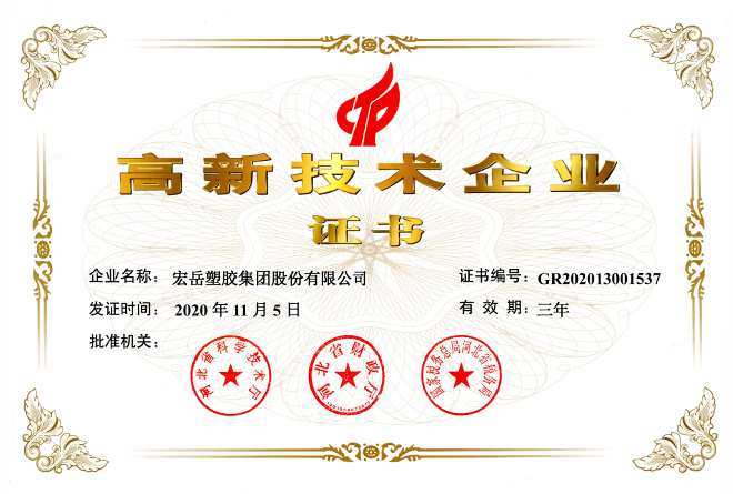 当选全国塑料制品标准化技术委员会会员,通过安全标准化认证,检测中心通过CNAS认证,被认定为河北省企业技术中心。