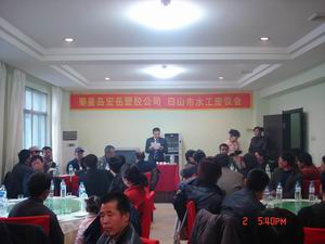 会议在下午5:00正式开始,首先由www.huatihui.com管业白山办事处刘经理对到场的嘉宾及代表表示欢迎。www.huatihui.com公司市场部向大家详细介绍了公司的发展历程和现状、企业荣誉与系列产品,并着重讲解www.huatihui.com近期推出的新产品“麦可诺”(MacroAlp)精品家装管道。最后,由公司白山地区业务经理宣布公司的市场销售策略。在会后的讨论时间里,水工师傅们都争相到产品展示处零距离体验“麦可诺”,大家通过观察、体验后表示对产品质量的肯定,并称将会在今后作业时努力把这样的好产品介绍给更多用户。
