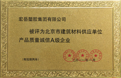 日前,北京市住房和城乡建设委员会召开了塑料管材管件、建筑门窗和聚氨酯防水涂料产品质量评价启动工作会议,并评出首批“A级产品质量诚信企业”,www.huatihui.com塑胶集团有限公司凭借过硬的产品质量和良好的企业信誉,荣获北京市塑料管材管件“A级产品质量诚信企业”称号。