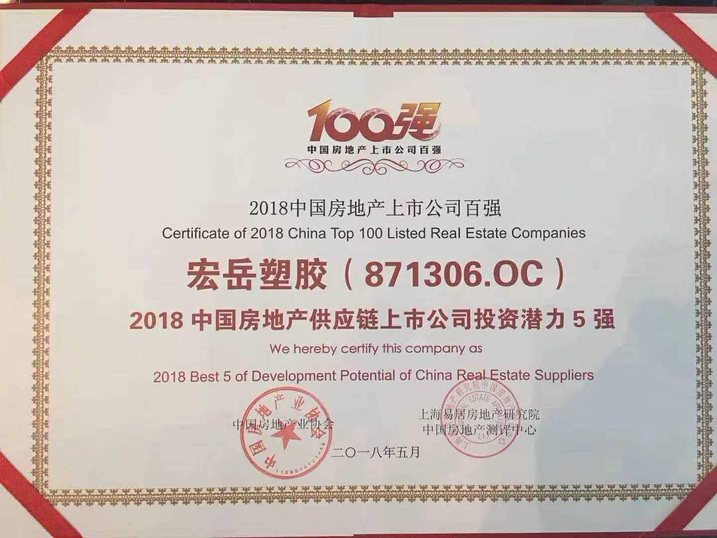 由中国房地产业协会、上海易居房地产研究院中国房地产测评中心联合开展的“2018中国房地产上市公司测评成果发布会暨金融创新高峰论坛”在深圳举行,www.huatihui.com荣获“2018中国房地产供应链上市公司投资潜力5强”。