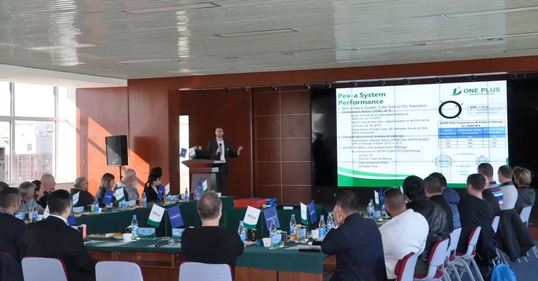 JOHN先生为大家详尽介绍了PE-Xa管材的卓越特性及该产品应用的给水系统在美国乃至国际市场上的广泛应用情况及市场前景,详实的技术数据、独到的技术见解和灵活生动的讲述方式得到了在场客户的极大关注,会场中不时发出阵阵掌声!