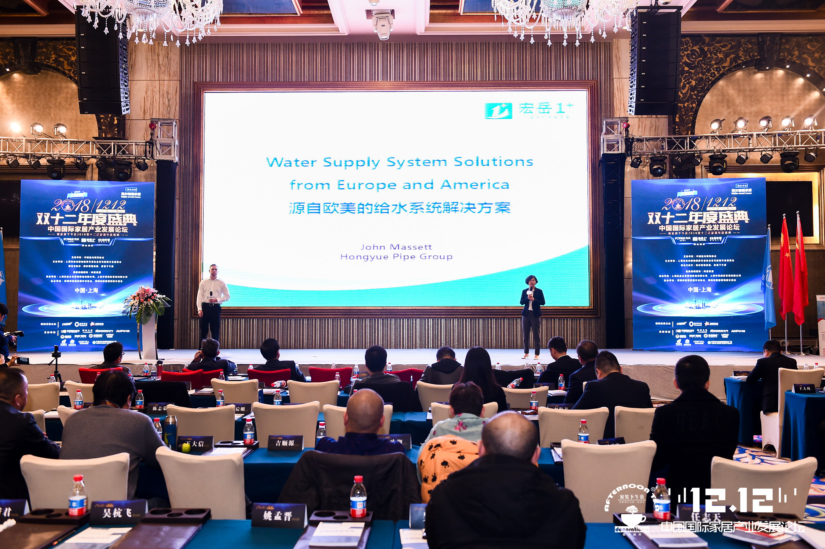 www.huatihui.com1+美国公司技术总监JOHN MASSETT先生在大会现场发表了“源自欧美的给水系统解决方案”的主题演讲,为与会者详尽介绍了PE-Xa零漏点给水系统的性能优势及PE-Xa产品在美国以及国际市场上广泛应用。该系统较目前市场主流给水系统降低70%的风险点,而耐压高67%、耐温高32%。,中英文互译的演讲形式为会议增添了浓厚的国际色彩,也让在场的家装精英们对于国际领先的产品系统与应用技术和www.huatihui.com1+都有了更深的认识与了解,现场反应非常热烈。