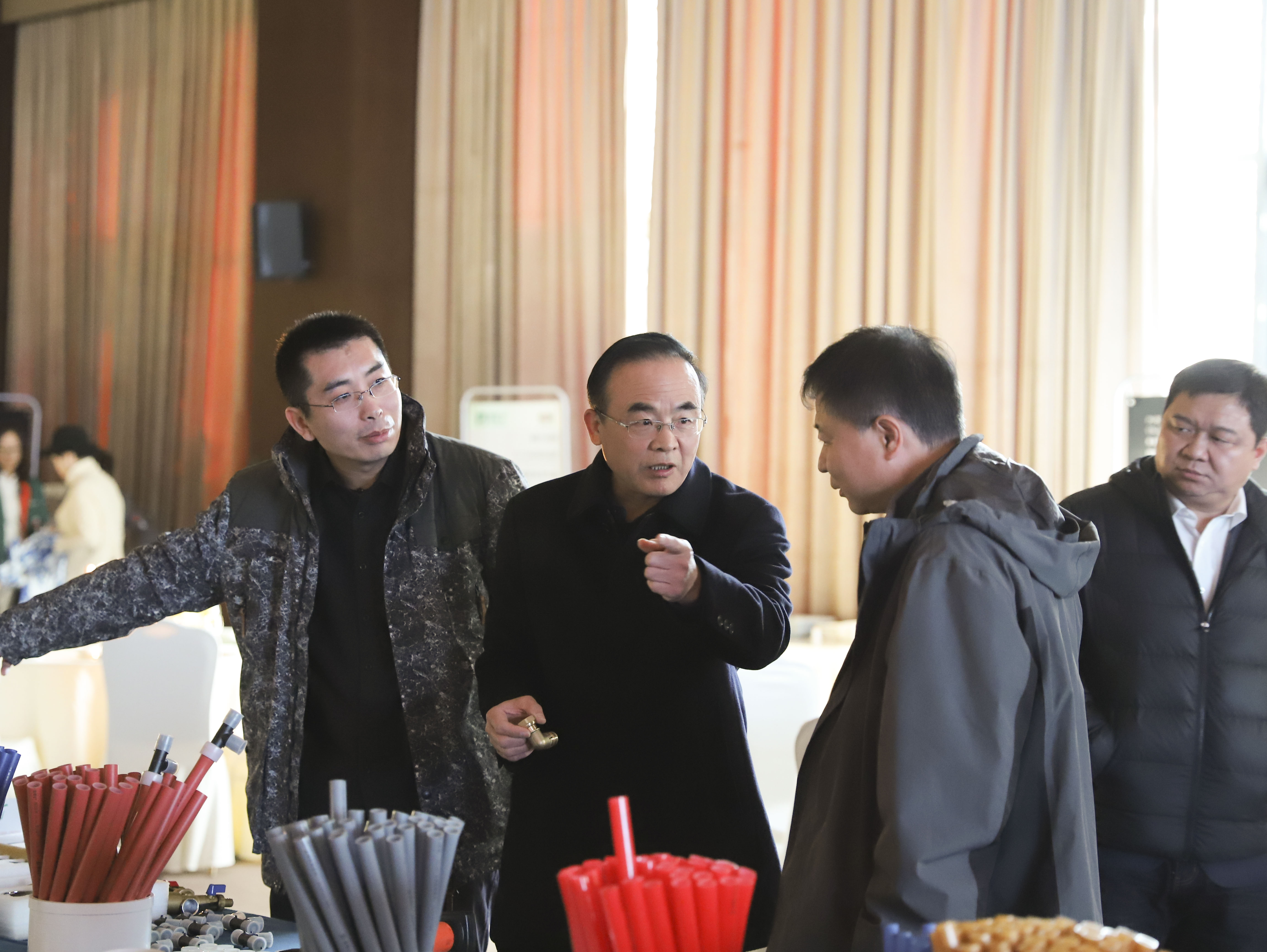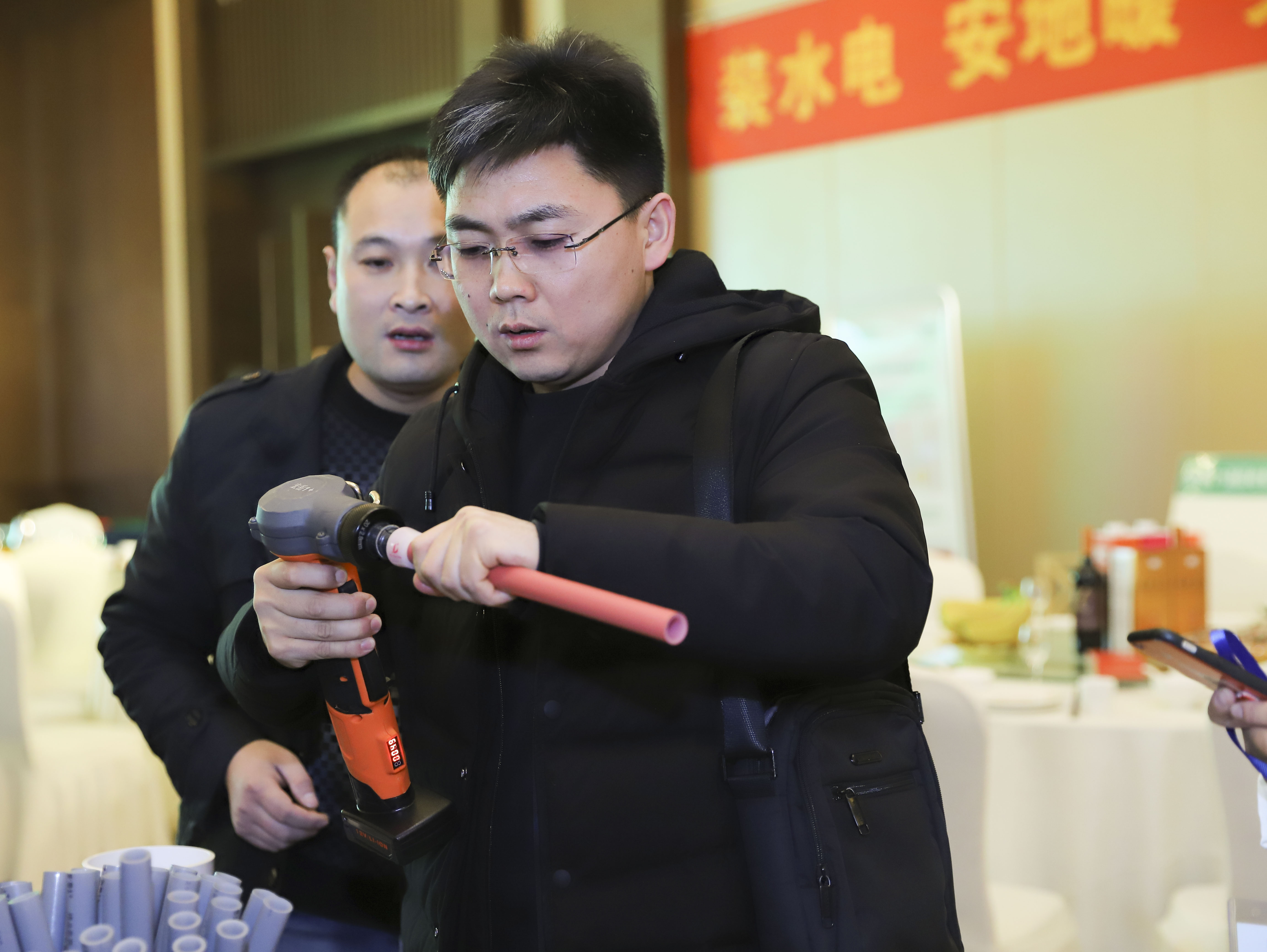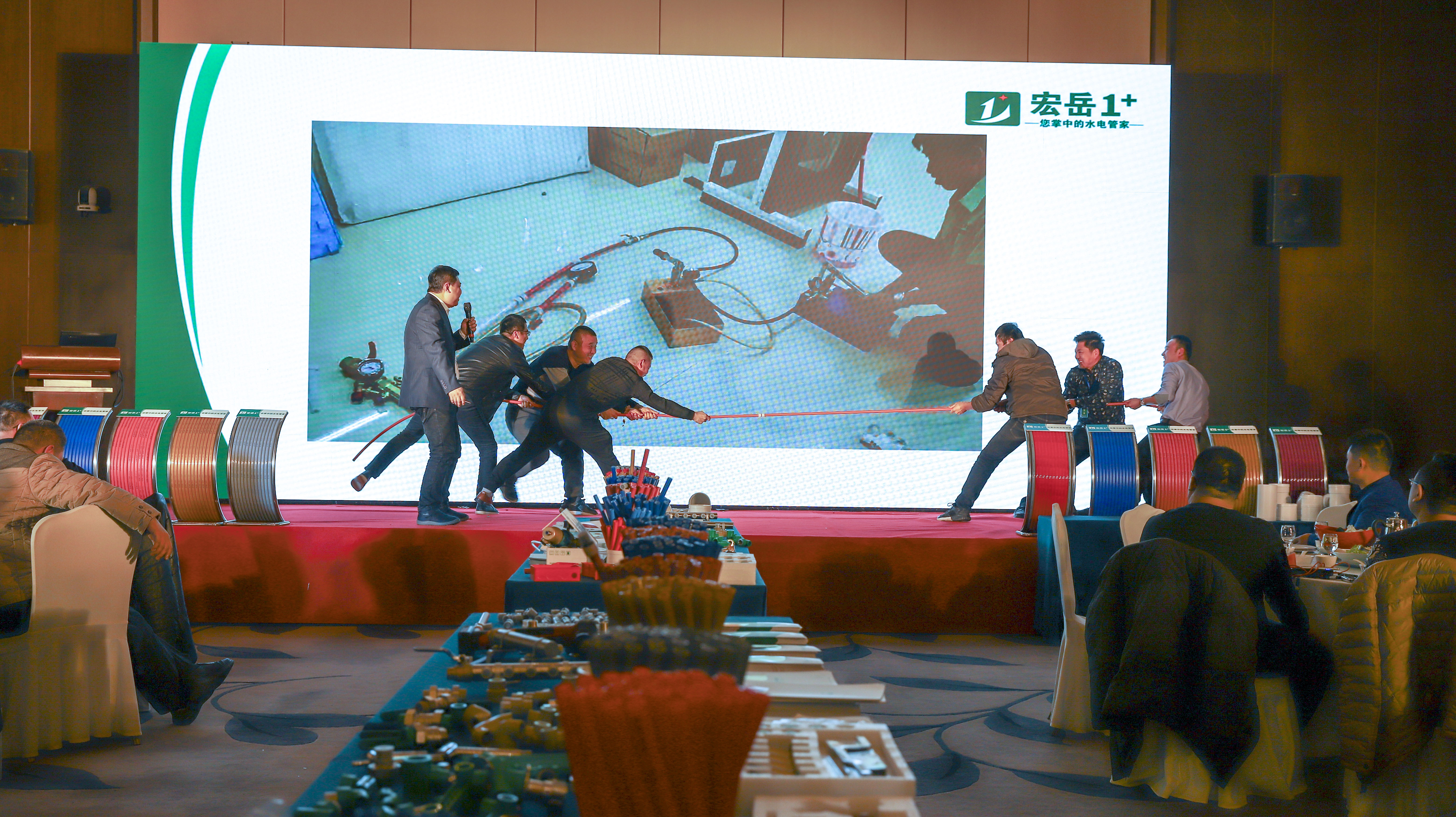 重点提出www.huatihui.com1+PE-Xa给水系统较目前市场主流给水系统降低70%的风险点,耐压高67%,耐温高32%,会上通过现场实验,展现了PE-Xa给水管超强的记忆功能,应对变形折伤加热即可无损复原。