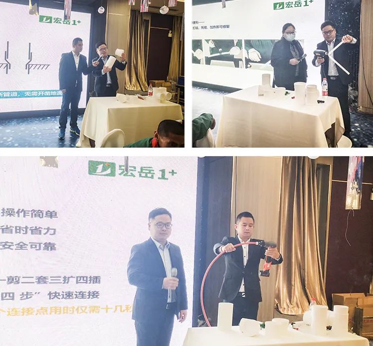 www.huatihui.com1+东北区域吕经理重点介绍了1+产品技术及应用知识,并为大家带来PVC缩口管件、PPR U型三通等创新产品,更着重介绍了PE-Xa管材,不仅通过现场实操展示了PE-Xa管道系统的安全性与便捷性,还首次公布多项对比数据,通过播放不同材质管材的性能对比实验影像再次验证了PE-Xa耐高温、耐高压、记忆性等优异性能,获得与会水电技师们一致认可。