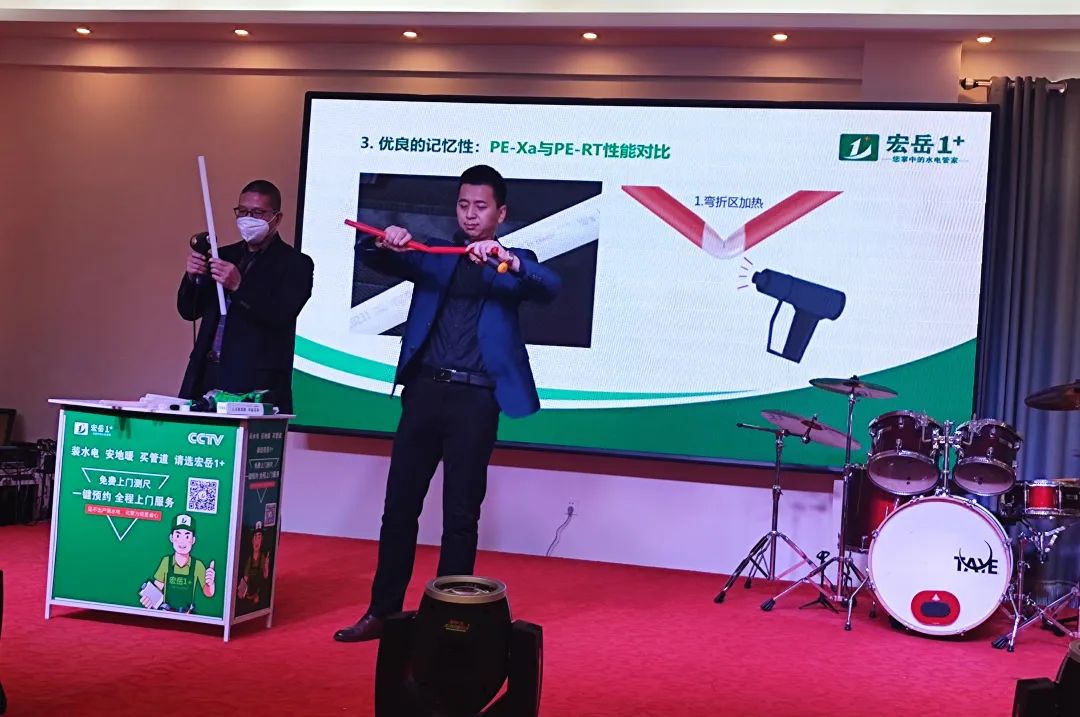 实践是检验技术的唯一标准,www.huatihui.com1+华北区域运营经理李超携团队将各种新品与技术应用带到现场,向各位参会者详实介绍了www.huatihui.com1+产品体系并着重介绍了PE-Xa快易给水系统的优势特点及施工工艺,现场通过实物实例及趣味游戏,充分地展示了www.huatihui.com1+产品的技术先进性和质量可靠性,尤其是PE-Xa管路便捷的连接方式和安全的产品性能,引起了现场嘉宾的高度关注