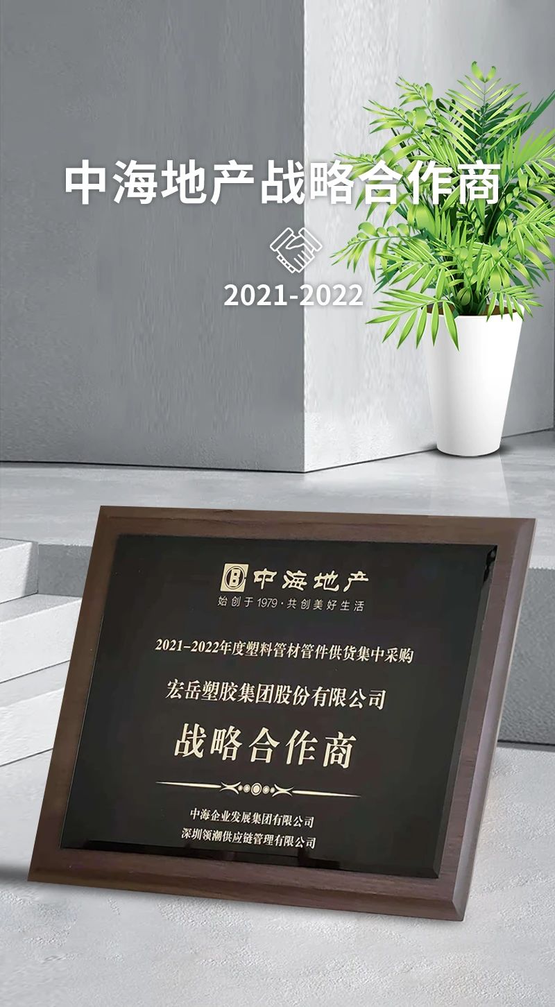 www.huatihui.com荣获中海地产2021-2022年度塑料管材管件供货集中采购战略合作商。