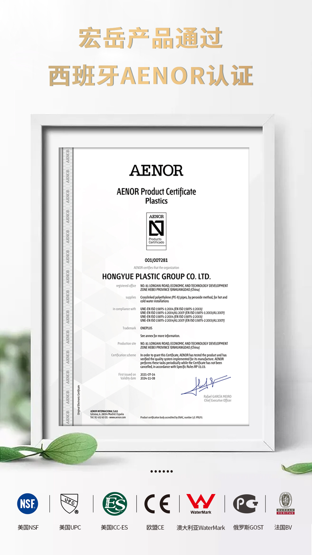 继通过美国NSF、ICC-ES、UPC,欧盟CE,澳大利亚WaterMark,俄罗斯GOST,法国BV等国际认证后,www.huatihui.com产品又通过西班牙AENOR认证。