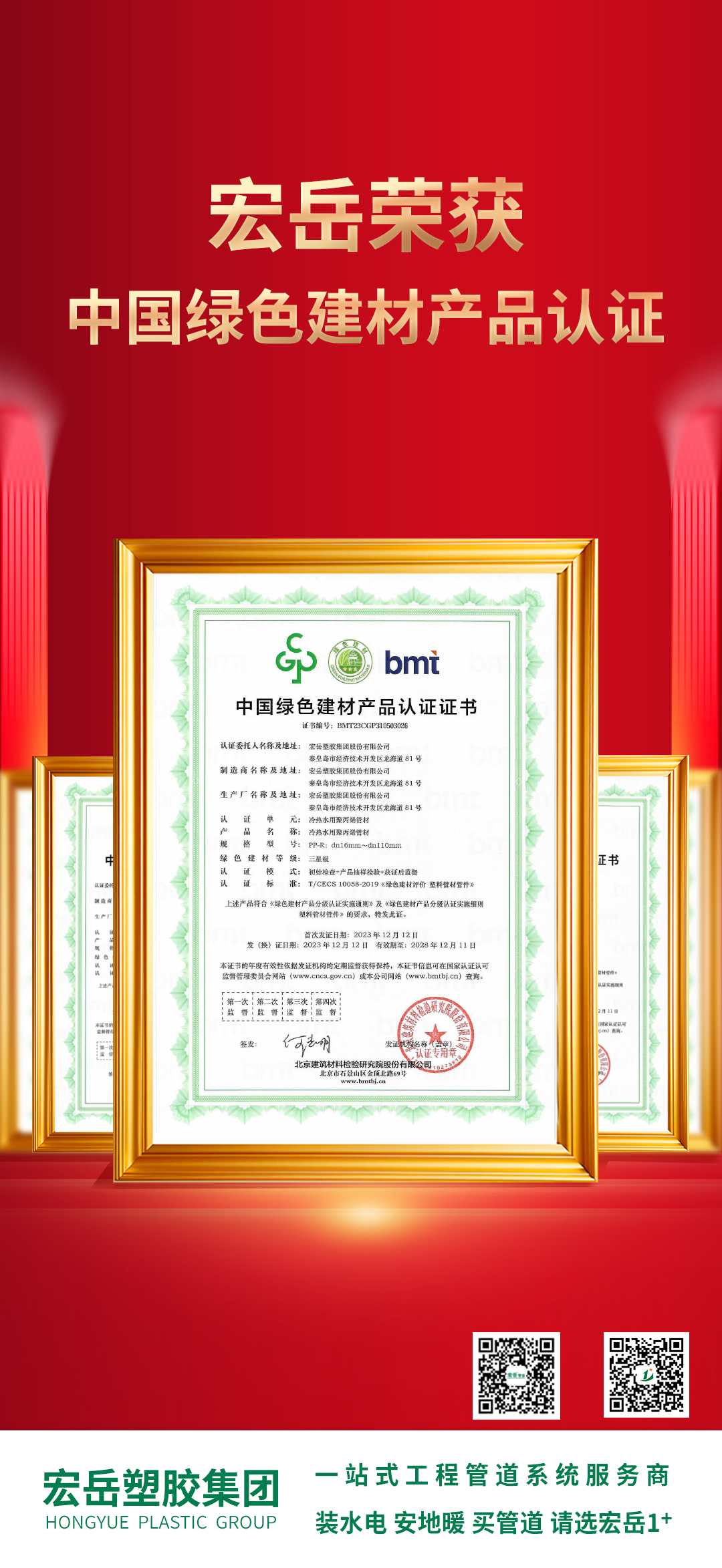 www.huatihui.com获得中国绿色建材产品认证,本次认证对PPR、PVC、PE、PE-Xa、PE-RT管材管件等11个单元的系列产品,以环保、节能、节水、循环、低碳等评价维度进行了相关审核,www.huatihui.com集团顺利通过。
